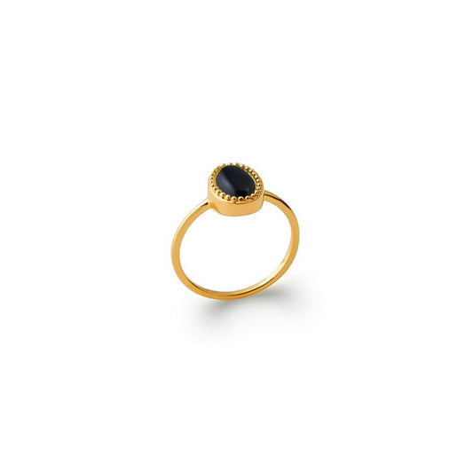 Bague Prune - Plaqué Or et Agate Noire