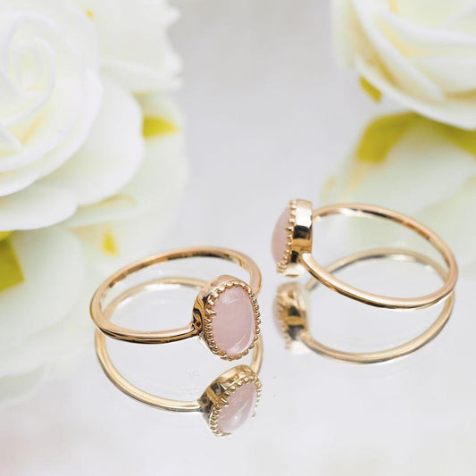 Bague Prune - Plaqué Or et Quartz Rose