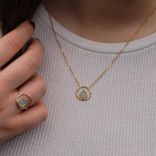• Bague Barbara - Plaqué Or et Pierre de Lune - Aurore & Luna