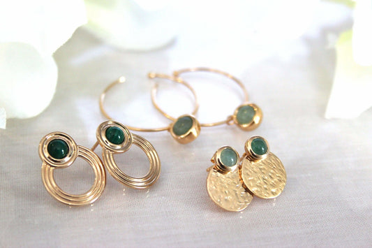 • Boucles d'oreilles Anaïs - Plaqué Or et Aventurine - Aurore & Luna