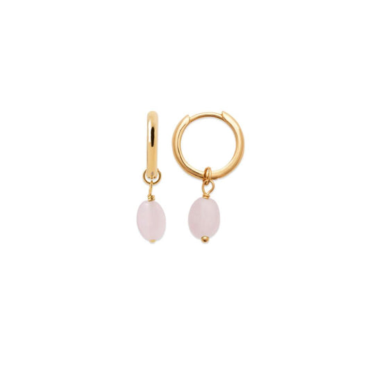 • Boucles d'oreilles Créoles Émilie - Plaqué Or et Quartz Rose - Aurore & Luna